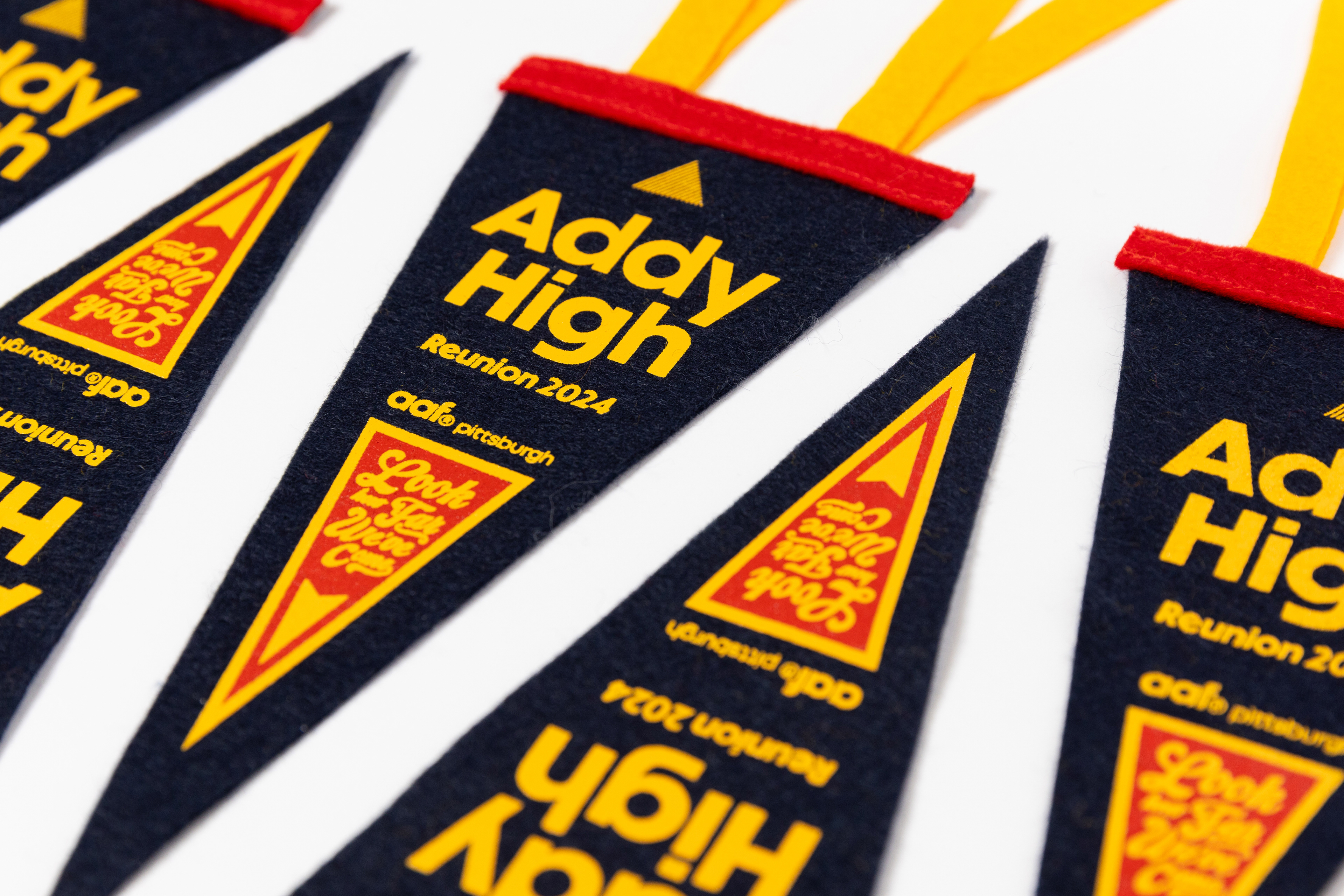 From rookie mistakes to the cutting edge, this campaign celebrates in our whole careers in advertising. We created a reunion-themed awards ceremony and built a campaign around it. The social media lead-up included a range of past photography styles, evocative club photos like "Crossed Arms Club" and "Tired Club," and ofc an invitation to the April event. We decorated the venue from hallways to rafters with appropriate pennants and signage. Take-home souvenirs included a printed yearbook, baby pennants, and if you were lucky, an award. The theme inspired a whole marching band and the Addy Pyrmamid Mascot Man to show up unannounced.