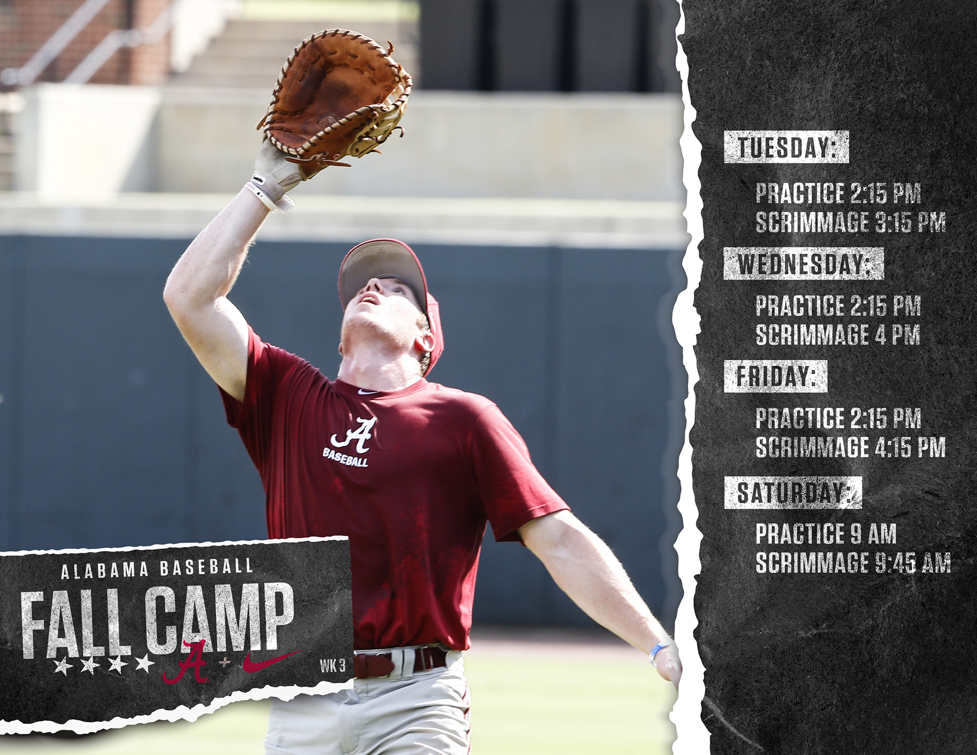University of Alabama Baseball's Fall Baseball social media graphics.
